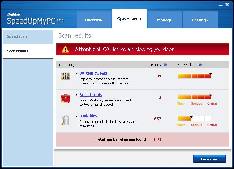 SpeedUpMyPC combines a professional range of tools to boost your computer's performance. After scanning your system to identify system flaws that are causing data bottlenecks and slowdowns, SpeedUpMyPC wields a multitude of targeted tweaks that boost system resource management, optimize system and network settings and get rid of junk files that are bloating your hard drive.